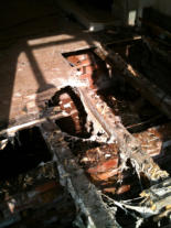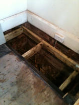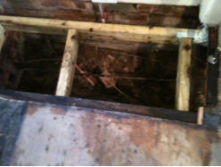 removing rotten floor timbers from around half the room, and treating the damp problem with chemicals we started repairs to