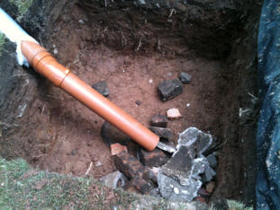 the downpipe, to take the water down through the raised patio into the lower level garden and away from the property. After